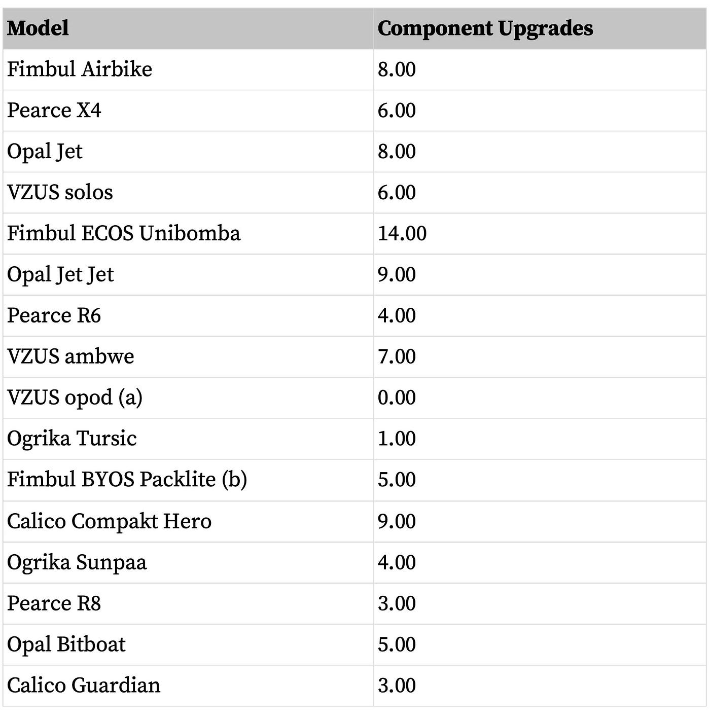 As an example, the Opal JetJet was relatively more expensive than a similarly performant ship like the Pearce X5 (excluding manufacturer bonus). This warranted 16 component upgrades.