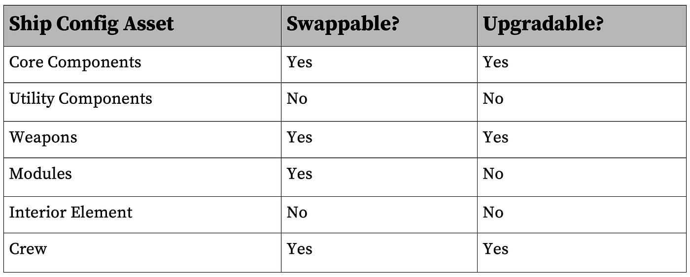 When a new ship configuration update goes live, components can be removed from ships. This will leave behind a Tier 0 component in the ship that cannot be removed or sold. This means ships will always be flight ready. Tier 0 can easily be replaced with higher quality components of the correct type and class. Also, after the snapshot and airdrop for crew, components, and modules, any future ship will only be for the base hull with Tier 0 core components. Any weapons, crew, modules, or core component upgrades will need to be acquired separately.