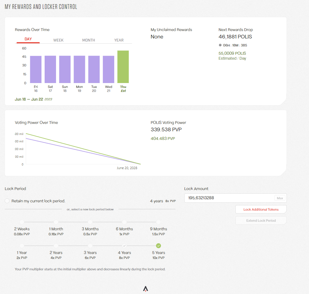 The amount of polis, multiplied by your locking period modifier, determines what we callPOLIS Voting Power (PVP), and this is the measurement of how much weight you have on the political decisions of Star Atlas.