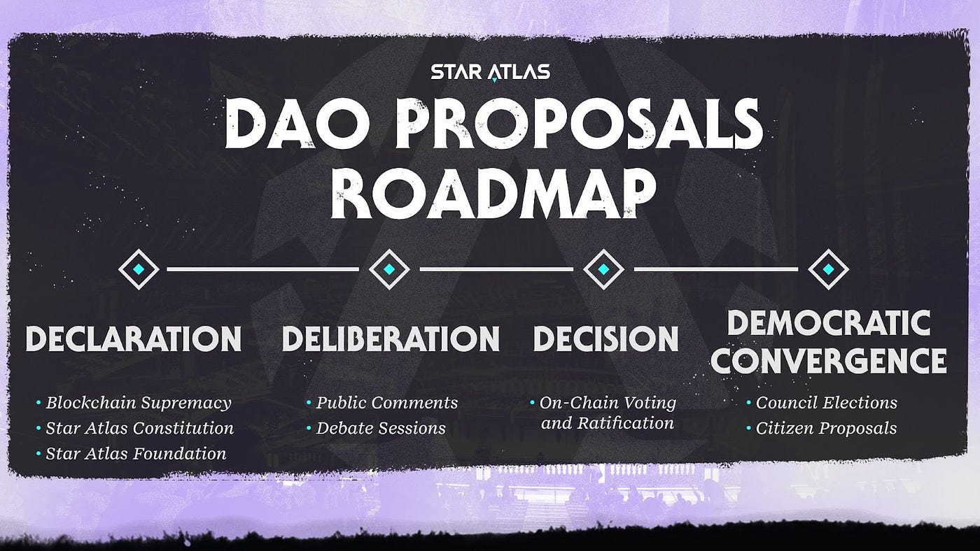 - Democratic Convergence — Should PIP-1 be approved, we will then proceed to hold the Star Atlas Foundation Council Members elections and start the citizen’s proposals system, inaugurating the age of the DAO rule over Star Atlas Political Ecosystem.