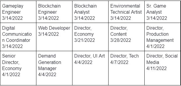 Shifting gears, these last three weeks have been intense for us in Star Atlas, so we want to share with you guys what we have been up to, starting by sharing the positions we have filled and the people that we have onboarded to our epic metaverse family!