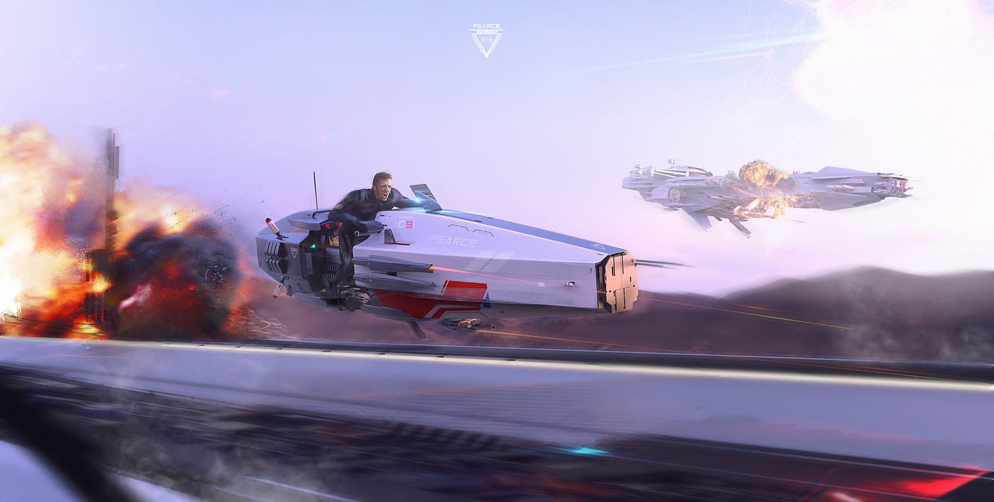 This is Pearce X4. A space-worthy, single passenger space bike that packs a punch. A popular model for short range COP patrols in space and on land. No pilot’s license required to explore distant exoplanets on a whim with the best, fully unobstructed view Pearce can offer. Comes standard with a bit of cargo space for those extra long trips through the vast, open range of outer space.
