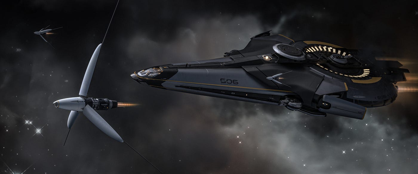 The Captain of a ship of this magnitude can utilize the weaponry to establish a very safe escort environment while enjoying the lush amenities for long distance space travel with a huge boost to peace of mind.
