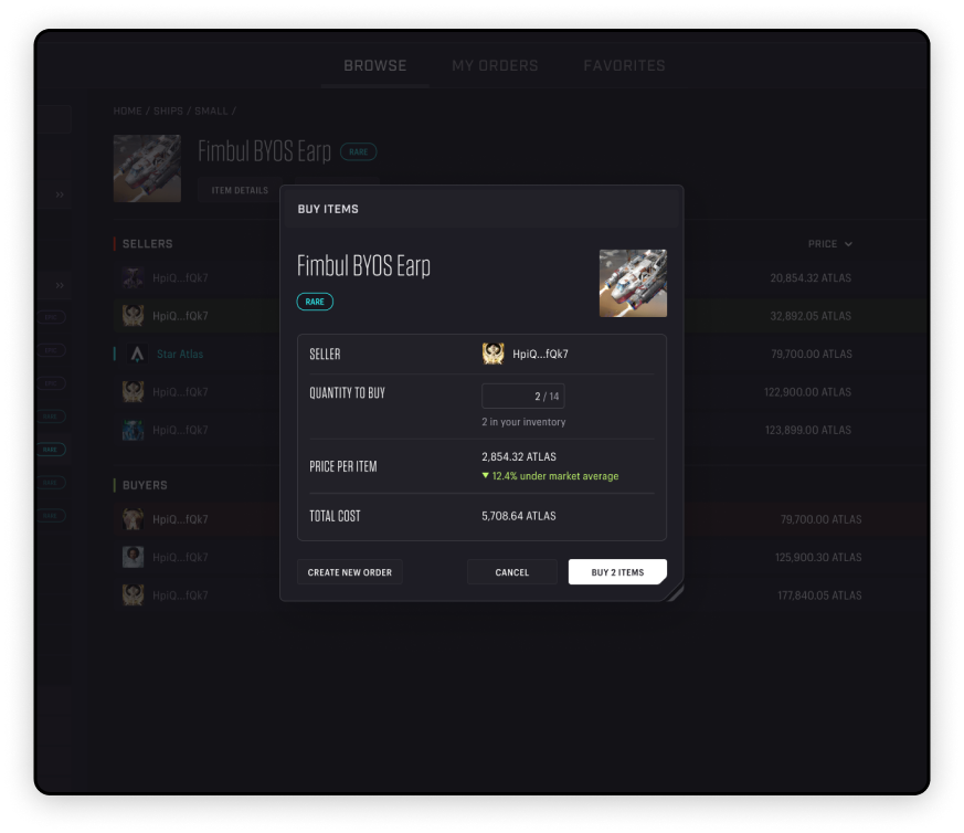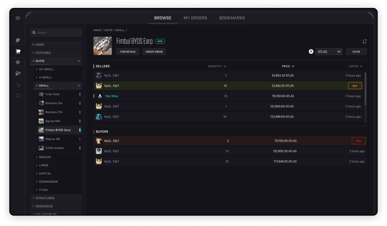 Nevertheless, the new galactic marketplace in Star Atlas is envisioned to be much more than a trading mechanism. Aside from the enhanced performance in terms of the classical ‘buy’ and ‘sell’ which will now require only three clicks, the Marketplace can now serve another priceless function in the Star Atlas ecosystem: Integration.